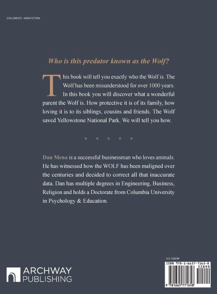 Who is this predator known as the Wolf? This book will tell you exactly who the Wolf is. The Wolf has been misunderstood for over 1000 years. In this book you will discover what a wonderful parent the Wolf is. How protective it is of its family, how loving it is to its siblings, cousins and friends. The Wolf saved Yellowstone National Park. We will tell you how.