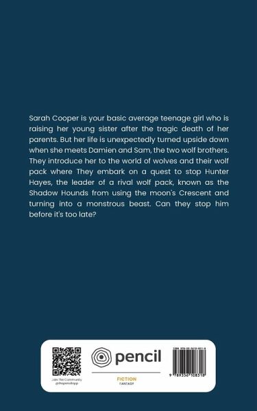 Sarah Cooper is your basic average teenage girl who is raising her young sister after the tragic death of her parents. But her life is unexpectedly turned upside down when she meets Damien and Sam, the two wolf brothers. They introduce her to the world of wolves and their wolf pack where They embark on a quest to stop Hunter Hayes, the leader of a rival wolf pack, known as the Shadow Hounds from using the moon's Crescent and turning into a monstrous beast. Can they stop him before it's too late?