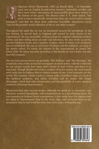 CONTENTS I: The Wolves of God II: Chinese Magic III: Running Wolf IV: First Hate V: The Tarn of Sacrifice VI: The Valley of the Beasts VII: The Call VIII: Egyptian Sorcery IX: The Decoy X: The Man Who Found Out XI: The Empty Sleeve XII: Wireless Confusion XIII: Confession XIV: The Lane that ran East and West XV: "Vengeance is Mine" About the author Algernon Henry Blackwood, CBE (14 March 1869 - 10 December 1951) was an English broadcasting narrator, journalist, novelist and short story writer, and among the most prolific ghost story writers in the history of the genre. The literary critic S. T. Joshi stated, "His work is more consistently meritorious than any weird writer's except Dunsany's" and that his short story collection Incredible Adventures (1914) "may be the premier weird collection of this or any other century". Throughout his adult life, he was an occasional essayist for periodicals. In his late thirties, he moved back to England and started to write stories of the supernatural. He was successful, writing at least ten original collections of short stories and later telling them on radio and television. He also wrote 14 novels, several children's books and a number of plays, most of which were produced, but not published. He was an avid lover of nature and the outdoors, as many of his stories reflect. To satisfy his interest in the supernatural, he joined The Ghost Club. He never married; according to his friends he was a loner, but also cheerful company. His two best-known stories are probably "The Willows" and "The Wendigo". He would also often write stories for newspapers at short notice, with the result th