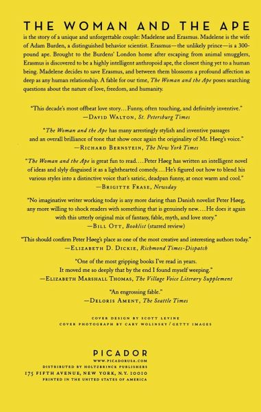 Lonely and disillusioned, Madelene Burden is a modern-day sleeping beauty drowsing in a alcoholic stupor. And the prince whose kiss brings her to life is 300-pound ape named Erasmus, the victim of a smuggling gone awry. Enthralling readers with the same taut prose, enigmatic characters, thrilling suspense, and satirical humor that drove "Smilla" to the top of bestseller lists, Hoeg offers a daring and imaginative fable that poses searching questions about the nature of romance.