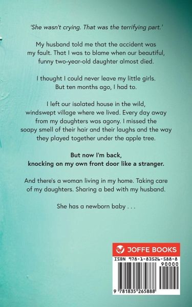 ¿¿¿¿¿ 'So gripping I read this in one sitting . . . The tension is palpable and grows with every page. I had to keep remembering to breathe.' Harmony Utterly compelling women's psychological fiction. 'She wasn't crying. That was the terrifying part.' My husband told me that the accident was my fault. That I was to blame when our beautiful, funny two-year-old daughter almost died. I thought I could never leave my little girls. But ten months ago, I had to. I left our isolated house in the wild, windswept village where we lived. Every day away from my daughters was agony. I missed the soapy smell of their hair and their laughs and the way they played together under the apple tree. But now I'm back, knocking on my own front door like a stranger. And there's a woman living in my home. Taking care of my daughters. Sharing a bed with my husband. She has a newborn baby . . . This beautifully written, suspenseful and heart-rending story of motherhood and trauma is perfect for fans of Dandy Smith, Louise Candlish, B.A. Paris, Adele Parks and Patricia MacDonald. More books by C.R. Howell coming soon - join the Joffe Books mailing list to be the first to hear about them!