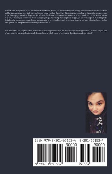 When Rachel Bixby moved to the small town of Pine Haven, Kansas, she believed she was far enough away from her ex-husband that she and her daughter could get a fresh start and no one would ever find them. Everything was going according to plan until a strange woman began showing up everywhere they went. Rachel immediately worries this woman is connected to her ex-husband, but the woman refuses to speak, so Rachel gets no answers. When kidnappings begin happening, including the kidnapping of her own daughter, Rachel begins to find clues that point to this woman having no connection to her ex-husband at all. It seems the lady that has been following Rachel has her own agenda, and it might not have anything to do with her ex. Will Rachel find her daughter before it's too late? Is the strange woman even behind her daughter's disappearance? Or are the tangled web of answers to her questions leading much closer to home in a dark corner of her life that she did not even know existed?