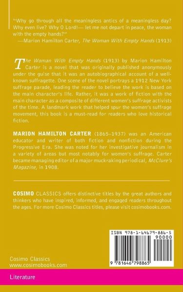 "Why go through all the meaningless antics of a meaningless day? Why even live? Why O Lord!- let me not depart in peace, the woman with the empty hands?" -Marion Hamilton Carter, The Woman With Empty Hands (1913) The Woman With Empty Hands (1913) by Marion Hamilton Carter is a novel that was originally published anonymously under the guise that it was an autobiographical account of a well-known suffragette. One scene of the novel portrays a 1912 New York suffrage parade, leading the reader to believe the work is based on the main character's life. Rather, it was a work of fiction with the main character as a composite of different women's suffrage activists of the time. A landmark work that helped spur the women's suffrage movement, this book is a must-read for readers who love historical fiction.