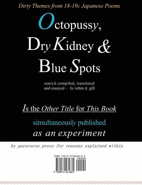 17-syllabet Japanese poems about human foibles, sans season (i.e., not haiku), were introduced a half-century ago by RH Blyth in two books, "Edo Satirical Verse Anthologies" and "Japanese Life and Character in Senryu." Blyth regretted having to introduce not the best senryu, but only the best that were clean enough to pass the censors. In this anthology, compiled, translated and essayed by Robin D. Gill, like Blyth, a renowned translator of thousands of haiku, we find 1,300 of the senryu (and zappai) that would once have been dangerous to publish. The book is not just an anthology of dirty poems such as Legman's classic "Limericks" or Burford's delightful "Bawdy Verse," but probing essays of thirty themes representative of the eros - both real and imaginary - of Edo, at the time, the world's largest city. Japanese themselves use senryu for historical documentation of social attitudes and cultural practices; thousands of senryu (and the related zappai), including many poems we might consider obscene, serve as examples in the Japanese equivalent of the OED (nipponkokugodaijiten). The specialized argot, obscure allusions and ellipsis that make reading dirty senryu a delightful riddle for one who knows just enough to be challenged yet not defeated, make them impenetrable to outsiders, so this educational yet entertaining resource has not been accessible to most students of Japanese (and the limited translations prove that even professors have difficulty with it). This book tries to accomplish the impossible: it includes all the information - original poems, pronunciation, explanation, glossary - needed to help specialists improve their senryu reading skills, while refraining from full citations to leave plenty of room for the curious monolingual to skip about the eclectic goodies. [Published simultaneously with two titles as an experiment.]