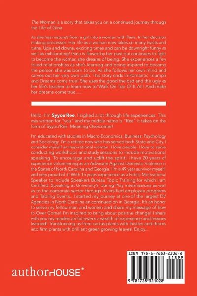 The Woman is a story that takes you on a continued journey through the Life of Gina. As she has matured from a girl into a woman with flaws. In her decision making processes. Her life as a woman now takes on many twists and turns. Ups and downs, exciting times and can be downright funny as well as exhilarating! Gina is flawed by her past but continues to fight to become the woman she dreams of being. She experiences a few failed relationships as she's learning and being inspired to become the person she was born to be, not trained to be! As she follows her own mind and carves out her very own path. This story ends in Romantic Triumph and Dreams come true! She uses the good the bad and the ugly as her life's teacher to learn how to"Walk On Top Of It All! And make her dreams come true.....