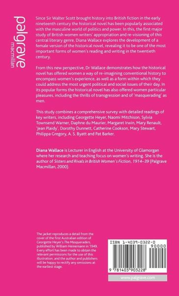 The historical novel has been one of the most important forms of women's reading and writing in the twentieth century, yet it has been consistently under-rated and critically neglected. In the first major study of British women writers' use of the genre, Diana Wallace tracks its development across the century. She combines a comprehensive survey with detailed readings of key writers, including Naomi Mitchison, Georgette Heyer, Sylvia Townsend Warner, Margaret Irwin, Jean Plaidy, Mary Renault, Philippa Gregory and Pat Barker.