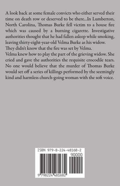 A look back at some female convicts who either served their time on death row or deserved to be there...In Lumberton, North Carolina, Thomas Burke fell victim to a house fire which was caused by a burning cigarette. Investigative authorities thought that he had fallen asleep while smoking, leaving thirty-eight-year-old Velma Burke as his widow. They didn't know that the fire was set by Velma. Velma knew how to play the part of the grieving widow. She cried and gave the authorities the requisite crocodile tears. No one would believe that the murder of Thomas Burke would set off a series of killings performed by the seemingly kind and harmless church-going woman with the soft voice.
