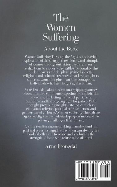The Women Suffering Through the Ages By Arne Fronsdal A siren screams. Missiles fall. A mother hides her child beneath the floorboards. Somewhere else, a young doctor performs surgery in the dark with trembling hands-and no anaesthetic. In The Women Suffering Through the Ages, Arne Fronsdal unveils a raw, unflinching chronicle of survival, injustice, and resilience-from the brutal invasion of Ukraine to the systematic subjugation of women across continents and centuries. Woven from first-hand accounts, historical reflections, and deeply human stories, this book does not look away. It demands that we see. Set against the backdrop of modern warfare and ancient patriarchy, the narrative travels from the bombed hospitals of Mariupol to tribal jungles of Ecuador, from the soul-crushing grip of organised religion to the quiet power of mothers, nurses, and young girls who refuse to break. At its heart is a plea: to witness the truth, and to confront what generations have been taught to accept. This is not just a book about war. It is not only about women. It is about the brutal cost of power, and the quiet defiance of those the world tried to forget. Told in the voice of a witness who has lived, listened, and refused to be silent, The Women Suffering Through the Ages is as urgent as it is unforgettable. You will emerge changed.