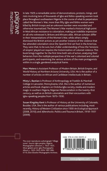 "The women's war of 1929: Gender and Violence in Colonial Nigeria ... provides one of the most detailed and multidimensional accounts of the circumstances that led to those events and their impact on the African-Colonial encounter. ... The Women's War of 1929 makes a significant contribution to studies of African women, gender, colonialism, and colonial violence. Matera, Bastian, and Kent retell a familiar story with new sources and insights, and present perspectives that enrich our knowledge of this remarkable event." (Saheed Aderinto, African Studies Review, Vol. 58 (3), December, 2015)