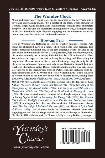 "Four and twenty marvellous tales, one for each hour of the day," retold in a novel and entertaining manner by a master of the form. While drawing on German, English, and Scandinavian folk literature for many of his characters and plots, Pyle reworks the material in an imaginative way, crafting the tales in his own inimitable style. Equally engaging are the numerous woodcuts that accompany the stories and enliven the narrative. Suitable for ages 7 and up.