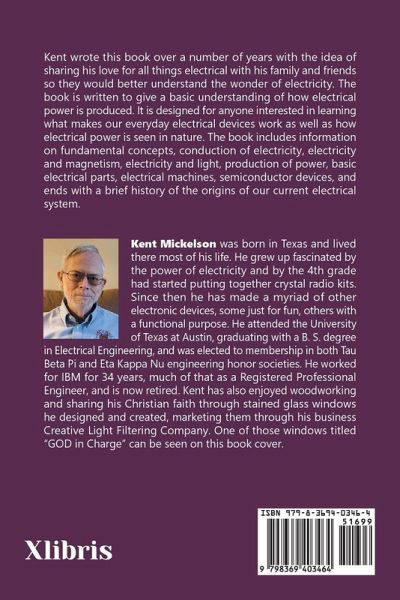 Kent wrote this book over a number of years with the idea of sharing his love for all things electrical with his family and friends so they would better understand the wonder of electricity. The book is written to give a basic understanding of how electrical power is produced. It is designed for anyone interested in learning what makes our everyday electrical devices work as well as how electrical power is seen in nature. The book includes information on fundamental concepts, conduction of electricity, electricity and magnetism, electricity and light, production of power, basic electrical parts, electrical machines, semiconductor devices, and ends with a brief history of the origins of our current electrical system.