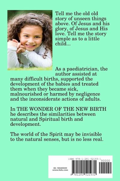 As a paediatrician, the author assisted with many difficult births, supported the development of the babies and treated them when they became sick, or were harmed by the negligence and inconsiderate actions of adults. In THE WONDER OF THE NEW BIRTH he describes the similarities between natural and Spiritual birth and development. Just as a child may fail to thrive if not properly fed, or be harmed by unwholesome substances from which he should have been protected, Spiritual malnutrition and poisoning are ever-present dangers to those starved of the Word of God or exposed to unGodly spiritual experiences. The Word is living and the strongest medicine able to cure every infirmity Heb 4:12 The world of the Spirit may be invisible to the natural senses, but it is no less real.