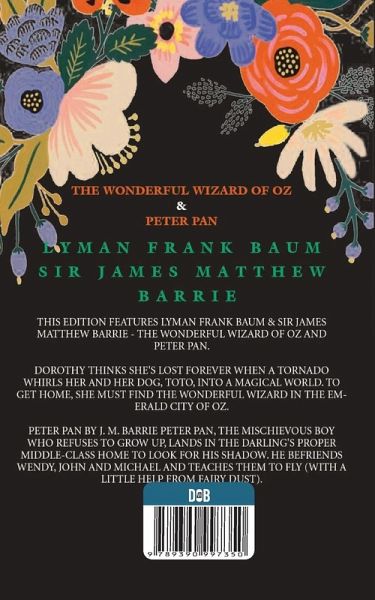 Bringing the Best of Children's Classic Together. "The Wonderful Wizard of Oz" & "Peter Pan" The Wonderful Wizard of Oz: is an American children's novel originally published in 1900. It is often reprinted under the title The Wizard of Oz. The story chronicles the adventures of a young farm girl named Dorothy in the magical Land of Oz, after she and her pet dog Toto are swept away from their Kansas home by a tornado. The book is one of the best-known stories in American literature and has been widely translated. The author followed it up with thirteen additional Oz books. Peter Pan: In pursuit of his lost shadow, a young boy named Peter Pan dashes into the bedroom of three children named Wendy, Michael, and John. After much blundering about, Wendy manages to reattach Peter's frenetic shadow, and in return, Peter propositions the three siblings to accompany him back to his home in a place he calls Neverland. A world of fantasy, flight, and fun, Neverland brings wonderment to Wendy and her brothers at every moment with Peter and his ageless band of Lost Boys, but with the magnificence that Neverland offers so too also lurks the evil Captain Hook...