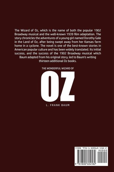 Do you want to read The Wonderful Wizard of Oz? If so then keep reading... The Wizard of Oz, which is the name of both the popular 1902 Broadway musical and the well-known 1939 film adaptation. The story chronicles the adventures of a young girl named Dorothy Gale in the Land of Oz, after being swept away from her Kansas farm home in a cyclone. The novel is one of the best-known stories in American popular culture and has been widely translated. Its initial success, and the success of the 1902 Broadway musical which Baum adapted from his original story, led to Baum's writing thirteen…mehr