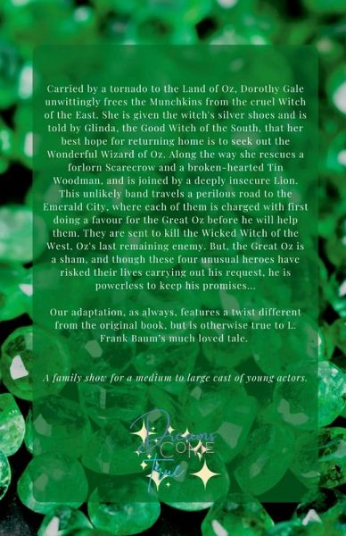 Carried by a tornado to the Land of Oz, Dorothy Gale unwittingly frees the Munchkins from the cruel Witch of the East. She is given the witch's silver shoes and is told by Glinda, the Good Witch of the South, that her best hope for returning home is to seek out the Wonderful Wizard of Oz. Along the way she rescues a forlorn Scarecrow and a broken-hearted Tin Woodman, and is joined by a deeply insecure Lion. This unlikely band travels a perilous road to the Emerald City, where each of them is charged with first doing a favour for the Great Oz before he will help them. They are sent to kill the Wicked Witch of the West, Oz's last remaining enemy. But, the Great Oz is a sham, and though these four unusual heroes have risked their lives carrying out his request, he is powerless to keep his promises... Our adaptation, as always, features a twist different from the original book, but is otherwise true to L. Frank Baum's much loved tale. A family show for a medium to large cast of young actors.