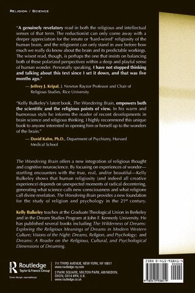 The explosion of new research in cognitive neuroscience has revealed fascinating dimensions of the human brain/mind system. But even as it brings us closer to understanding how the mind works, science is producing more, and perhaps even larger questions. What further powers and abilities are latent within us? The Wondering Brain argues that the profound questions raised by cognitive neuroscience may best be answered through a dialogue with religion. Kelly Bulkeley argues that cognitive neuroscience, seen in the light of religion, is a unique source of insight into the natural groundings of faith, morality, love, ecstasy, and revelation. And religion, seen in the light of cognitive neuroscience, is a powerful cultural system whose most valuable function is to stretch and expand our basic cognitive capacities. Kelly Bulkeley's deep engagement with both religious thinking and the workings of cognitive neuroscience makes for a constantly surprising book, full of stories that catch the reader in the unexpected place between two supposedly irreconcilable ways of being in the world.