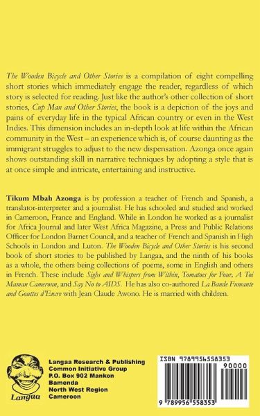 The Wooden Bicycle and Other Stories is a compilation of eight compelling short stories which immediately engage the reader, regardless of which story is selected for reading. Just like the author's other collection of short stories, Cup Man and Other Stories, the book is a depiction of the joys and pains of everyday life in the typical African country or even in the West Indies. This dimension includes an in-depth look at life within the African community in the West - an experience which is, of course daunting as the immigrant struggles to adjust to the new dispensation. Azonga once again shows outstanding skill in narrative techniques by adopting a style that is at once simple and intricate, entertaining and instructive.