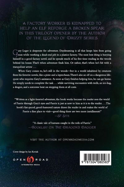 A factory worker is kidnapped to help an elf reforge a broken spear, in this trilogy opener by the bestselling author of the Legend of Drizzt series. Gary Leger is desperate for adventure. Daydreaming is all that keeps him from going nuts while working a dead-end job in a plastics factory. The next best thing is burying himself in a good fantasy novel, and he spends much of his free time reading in the woods behind his house. That's when adventure finds him. Or rather, that's when he's hit with a tranquilizer arrow . . . When Gary comes to, he's still in the woods--but in a world inhabited by creatures from his favorite novels, like a pixie and a leprechaun. There's also an elf on a dangerous life-quest who requires Gary's assistance. As soon as Gary finishes helping him, he can go home. He simply needs to complete the task . . . while surviving encounters with trolls, an ice-hag, a dragon, and a sorceress bent on stopping them at all costs. This first novel in the Spearwielder's Tale trilogy is a great choice for fans of Alan Dean Foster's Spellsinger books and Terry Brooks's Shannara series. Praise for The Woods Out Back "Written as a light-hearted adventure, the book works because the reader sees the world of Faerie through Gary's eyes and Faerie is just as new to him as it is to the reader. . . . The book's fast-paced, good-humored nature draws the reader in and makes the world of Faerie a fine place to visit--good thing there are two more installments!" --SF Site