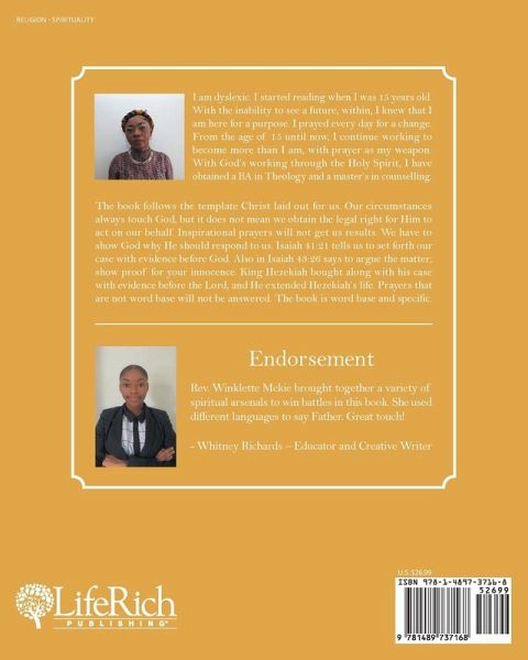 The book follows the template Christ laid out for us. Our circumstances always touch God, but it does not mean we obtain the legal right for Him to act on our behalf. Inspirational prayers will not get us results. We have to show God why He should respond to us.Isaiah 41:21 tells us to set forth our case with evidence before God. Also in Isaiah 43:26 says to argue the matter; show proof for your innocence. King Hezekiah bought along with his case with evidence before the Lord, and He extended Hezekiah's life. Prayers that are not word base will not be answered. The book is word base and specific.