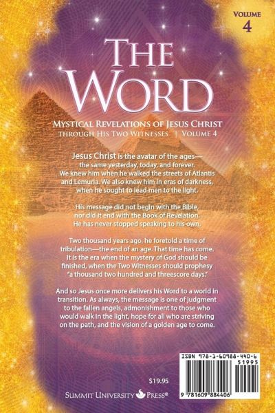 Jesus Christ is the avatar of the ages-the same yesterday, today and forever. We knew him when he walked the streets of Atlantis and Lemuria. We also knew him in eras of darkness, when he sought to lead men to the light. His message did not begin with the Bible, nor did it end with the Book of Revelation. He has never stopped speaking to his own. Two thousand years ago, he foretold a time of tribulation-the end of an age. That time has come. It is the era when the mystery of God should be finished, when the Two Witnesses should prophecy "a thousand two hundred and threescore days." And so Jesus once more delivers his Word to a world in transition. As always, the message is one of judgement to the fallen angels, admonishment to those who would walk in the light, hope for all who are striving on the path, and the vision of golden age to come.