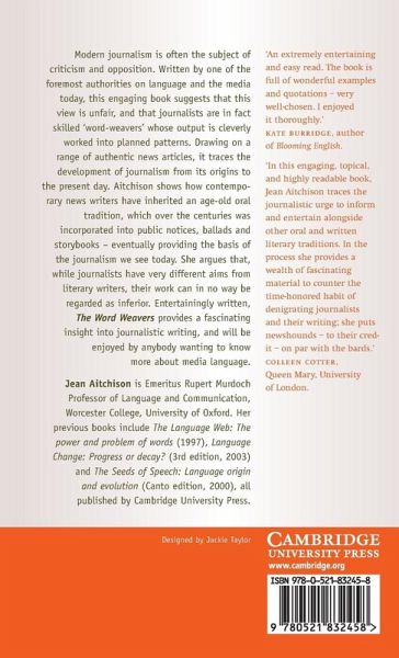 Modern journalism is often the subject of criticism and opposition. Written by one of the foremost authorities on language and the media writing today, this engaging book suggests that view is unfair, and that journalists are in fact skilled 'word weavers' whose output is cleverly worked into planned patterns. Drawing on a range of authentic news articles, it traces the development of journalism from its origins to the present day. Aitchison shows how contemporary news writers have inherited an age-old oral tradition, which over the centuries was incorporated into public notices, ballads and storybooks - eventually providing the basis of the journalism we see today. She argues that, while journalists have very different aims to literary writers, their work can in no way be regarded as inferior. Entertainingly written, The World Weavers provides a fascinating insight into journalistic writing, and will be enjoyed by anybody wanting to know more about media language.