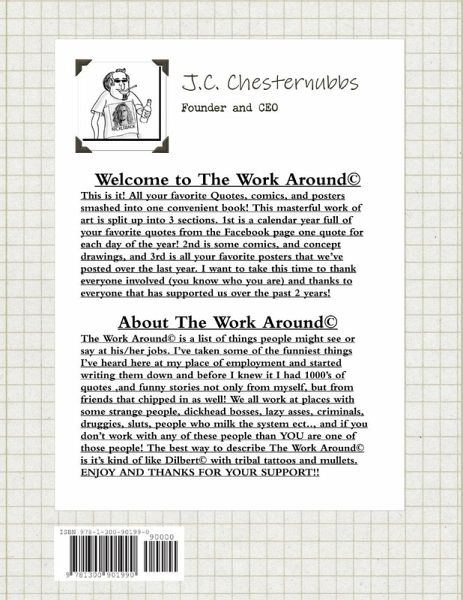The Work Around© is a list of things people might see or say at his/her jobs. I've taken some of the funniest things I've heard here at my place of employment and started writing them down and before I knew it I had 1000's of quotes ,and funny stories not only from myself, but from friends that chipped in as well! We all work at places with some strange people, dickhead bosses, lazy asses, criminals, druggies, sluts, people who milk the system ect.., and if you don't work with any of these people than YOU are one of those people! The best way to describe The Work Around© is it's kind of like Dilbert© with tribal tattoos and mullets. ENJOY AND THANKS FOR YOUR SUPPORT!!