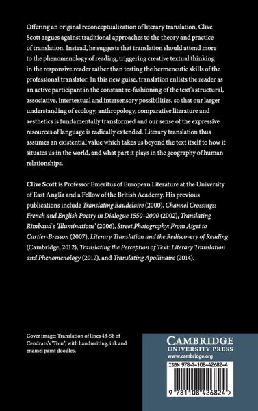 Offering an original reconceptualization of literary translation, Clive Scott argues against traditional approaches to the theory and practice of translation. Instead he suggests that translation should attend more to the phenomenology of reading, triggering creative textual thinking in the responsive reader rather than testing the hermeneutic skills of the professional translator. In this new guise, translation enlists the reader as an active participant in the constant re-fashioning of the text's structural, associative, intertextual and intersensory possibilities, so that our larger understanding of ecology, anthropology, comparative literature and aesthetics is fundamentally transformed and our sense of the expressive resources of language radically extended. Literary translation thus assumes an existential value which takes us beyond the text itself to how it situates us in the world, and what part it plays in the geography of human relationships.