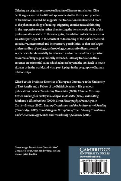 Clive Scott is Professor Emeritus of European Literature at the University of East Anglia and a Fellow of the British Academy. His previous publications include, Translating Baudelaire (2000), Channel Crossings: French and English Poetry in Dialogue 1550-2000 (2002), Translating Rimbaud's 'Illuminations', (2006), Street Photography: From Atget to Cartier-Bresson (2007), Literary Translation and the Rediscovery of Reading (Cambridge, 2012) Translating the Perception of Text: Literary Translation and Phenomenology (2012), and Translating Apollinaire (2014).