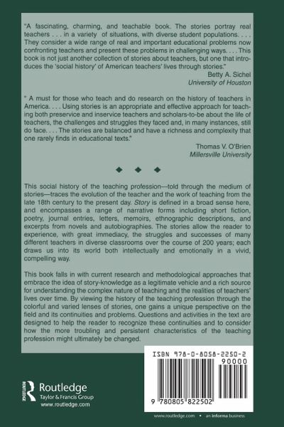 This volume presents a complex portrait of the American teacher through a fascinating range of "story" narratives, including fictional short stories, poetry, diaries, letters, ethnographies, and autobiographies. Through these stories, the volume traces the evolution of the teacher and the profession over the course of two centuries -- from the late 1700s to the late 1900s. In depicting the profession over time, the authors include stories by and about both male and female teachers, as well as teachers from a wide range of cultural and ethnic backgrounds, including white, black, Hispanic, Asian-American, immigrant and native-born, and gay and straight. This book offers accessible, comprehensive introductions to both the central ideas associated with each period and to the representative individual stories that are included within it. The volume editors connect each of the parts to earlier and later ones by tracing evolving themes of feminization, teacher activism, conceptions of curriculum and discipline, and issues of multiculturalism. Questions, suggested readings, and activities are offered at the end of each section. Photographs and drawings -- retrieved from state historical archives -- provide telling images of the teacher in each of the four periods.