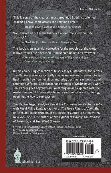In this compelling collection of talks, essays, interviews, and letters, Toni Packer presents a radically simple and original approach to spiritual growth free from religious authority, doctrine, symbolism, and ceremony. A former Zen teacher and student of Krishnamurti's work, Toni Packer goes beyond traditional religion and explores with the reader the root of human attachments and the source of suffering, opening the way to compassion.