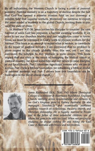 By all indications, the Western Church is facing a crisis of pastoral ministry. Pastoral ministry is on a trajectory of decline despite the fact that God has opened a massive mission field on our doorstep, a mission field that requires workers. Moreover, we continue to export the same model of ministry to the global Church, inviting them to join us in the state of crisis. In Matthew 9:37-38, Jesus invites his disciples to consider the vast harvest of souls God has prepared, a harvest awaiting workers. If we want to see our churches healthy and our neighbours come to know Jesus, we must be interested in God's work to prepare workers for the harvest. This book is an attempt to repair what is broken, to contribute to the repair of pastoral ministry. I am convinced that no problem is more urgent to the church globally than this one, yet I am also convinced the solution to this problem is quite simple. This book argues that our crisis is the result of swapping the biblical vision of pastoral ministry for a poor substitute and our failure to raise disciples in our local church. Part 1 identifies significant reasons why we are in a crisis; Part 2 lays a biblical foundation for rebuilding a biblical model of pastoral ministry; and Part 3 shows how this foundation can be built upon in the life of a local church.