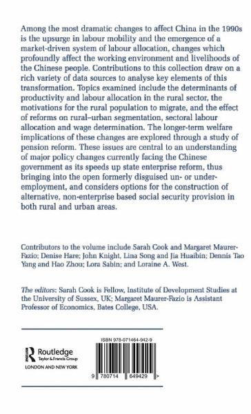 Among the most dramatic changes to affect China in the 1990s is the upsurge in labour mobility and the emergence of a market-driven system of labour allocation, changes which profoundly affect the working environment and livelihoods of the Chinese people. Papers in this collection draw on a wide variety of data sources to analyse key elements of this transformation.