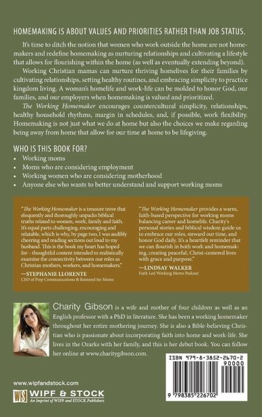Homemaking is about values and priorities rather than job status. It's time to ditch the notion that women who work outside the home are not homemakers and redefine homemaking as nurturing relationships and cultivating a lifestyle that allows for flourishing within the home (as well as eventually extending beyond). Working Christian mamas can nurture thriving homelives for their families by cultivating relationships, setting healthy routines, and embracing simplicity to practice kingdom living. A woman's homelife and work life can be molded to honor God, our families, and our employers when homemaking is valued and prioritized. The Working Homemaker encourages countercultural simplicity, relationships, healthy household rhythms, margin in schedules, and, if possible, work flexibility. Homemaking is not just what we do at home but also the choices we make regarding being away from home that allow for our time at home to be lifegiving. Who is this book for? -Working moms -Moms who are considering employment -Working women who are considering motherhood -Anyone else who wants to better understand and support working moms