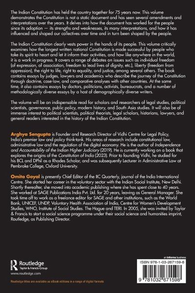 The Indian Constitution has held the country together for 75 years now. This volume demonstrates the Constitution is not a static document and has seen several amendments and interpretations over the years. It delves into how the document has worked for the people since its adoption - its strengths and weaknesses, its many interpretations, how it has influenced and shaped our collectives over time and in turn been shaped by the people.