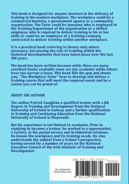 The Workplace Tutor is designed for anyone who is responsible for the delivery of training in the modern workplace. The workplace could be a commercial business, a government agency or a community organisation. The Tutor could be someone who is employed in the Training Department of the organisation or a skilled employee required to deliver training in his or her skills or an employee of a training company contracted to deliver training within a different workplace. It is a practical book referring to theory only where necessary, but placing the role of training within the historical developments that have taken place over the last 300 years.