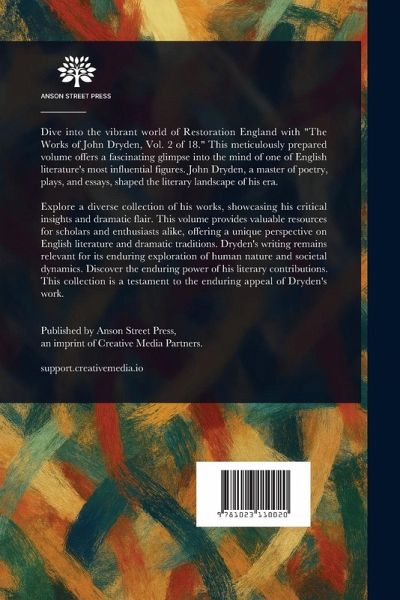 Dive into the vibrant world of Restoration England with "The Works of John Dryden, Vol. 2 of 18." This meticulously prepared volume offers a fascinating glimpse into the mind of one of English literature's most influential figures. John Dryden, a master of poetry, plays, and essays, shaped the literary landscape of his era. Explore a diverse collection of his works, showcasing his critical insights and dramatic flair. This volume provides valuable resources for scholars and enthusiasts alike, offering a unique perspective on English literature and dramatic traditions. Dryden's writing remains relevant for its enduring exploration of human nature and societal dynamics. Discover the enduring power of his literary contributions. This collection is a testament to the enduring appeal of Dryden's work. This work has been selected by scholars as being culturally important, and is part of the knowledge base of civilization as we know it. This work is in the public domain in the United States of America, and possibly other nations. Within the United States, you may freely copy and distribute this work, as no entity (individual or corporate) has a copyright on the body of the work. Scholars believe, and we concur, that this work is important enough to be preserved, reproduced, and made generally available to the public. We appreciate your support of the preservation process, and thank you for being an important part of keeping this knowledge alive and relevant.