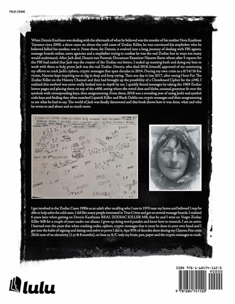 When Dennis Kaufman was dealing with the aftermath of what he believed was the murder of his mother Nora Kaufman Tarrance circa 2000, a show came on about the cold cases of Zodiac Killer, he was convinced his stepfather who he believed killed his mother, was it. From there, for Dennis, it evolved into a long, journey of dealing with FBI agents, message boards online, news agencies and a stepfather trying to confess he was the real Zodiac but in ways not many would understand. After Jack died, Dennis met Forensic Document Examiner Nanette Barto whom after 5 reports for the FBI had nailed that Jack was the creator of the Zodiac era letters. I ended up meeting both and doing my best to work with them to help prove Jack was the real Zodiac. Dennis, who died 2018, himself, approved of me continuing my efforts to crack Jack's ciphers, cryptic messages that span decades in 2014. During my own crisis as a 8/14/16 fire victim, Nanette kept inspiring me to dig in deep and keep trying.