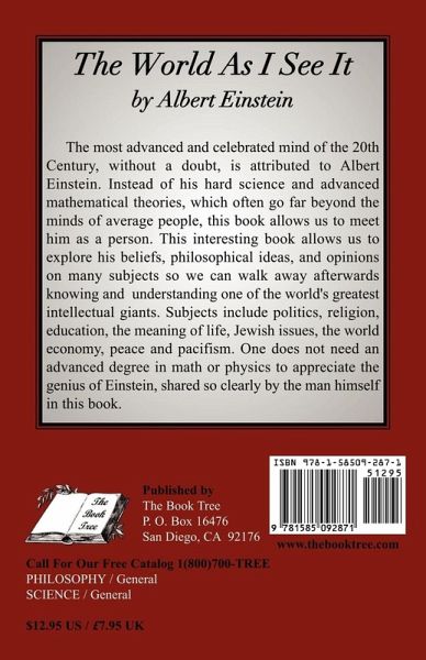 The most advanced and celebrated mind of the 20th Century, without a doubt, is attributed to Albert Einstein. Instead of his hard science and advanced mathematical theories, which often go far beyond the minds of average people, this book allows us to meet him as a person. This interesting book allows us to explore his beliefs, philosophical ideas, and opinions on many subjects so we can walk away afterwards knowing and understanding one of the world's greatest intellectual giants. Subjects include politics, religion, education, the meaning of life, Jewish issues, the world economy, peace and pacifism. One does not need an advanced degree in math or physics to appreciate the genius of Einstein, shared so clearly by the man himself in this book.