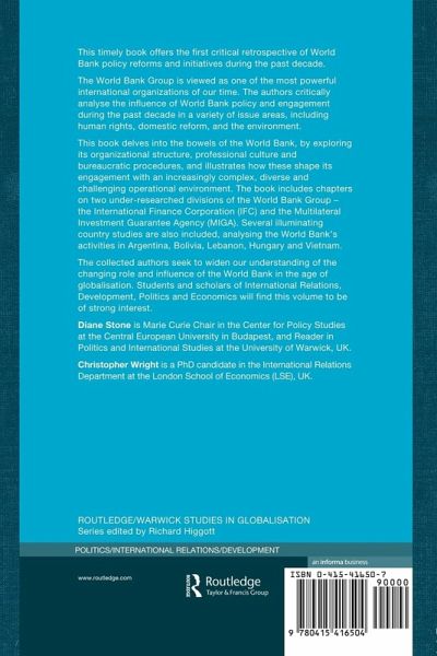 This timely book offers the first critical examination of World Bank policy reforms and initiatives during the past decade. The World Bank is viewed as one of the most powerful international organizations of our time. The authors critically analyze the influence of the institution's policy and engagement during the past decade in a variety of issue areas, including human rights, domestic reform, and the environment. The World Bank and Governance delves into the bowels of the World Bank, exploring its organizational structure, professional culture and bureaucratic procedures, illustrating how these shape its engagement with an increasingly complex, diverse and challenging operational environment. The book includes chapters on two under-researched divisions of the World Bank: the International Finance Corporation and the Multilateral Investment Guarantee Agency. Several illuminating country studies are also included, analyzing the World Bank's activities in Argentina, Bolivia, Lebanon, Hungary and Vietnam. This volume will be of great interest to students and scholars of international relations, development, politics and economics.