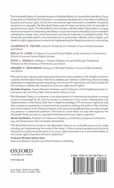 "The Marrakesh Treaty to Facilitate Access to Published Works for Persons Who Are Blind, Visually Impaired, or Otherwise Print Disabled" is a watershed development in the fields of intellectual property and human rights. As the first international legal instrument to establish mandatory exceptions to copyright, the Marrakesh Treaty uses the legal and policy tools of copyright to advance human rights. The World Blind Union Guide to the Marrakesh Treaty offers a comprehensive framework for interpreting the Treaty in ways that enhance the ability of print-disabled individuals to create, read, and share books and cultural materials in accessible formats. The Guide also provides specific recommendations to government officials, policymakers, and disability rights organizations involved with implementing the Treaty's provisions in national law.
