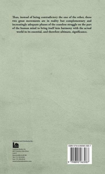 Thus, instead of being contradictory the one of the other, these two great movements are in reality but complementary and increasingly adequate phases of the ceaseless struggle on the part of the human mind to bring itself into harmony with the actual world in its essential, and therefore ultimate, significance.