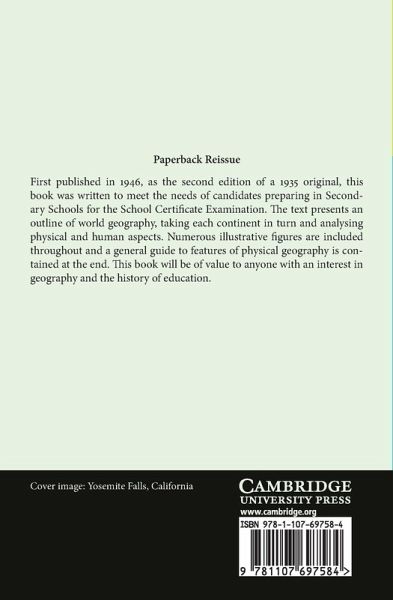 First published in 1946, as the second edition of a 1935 original, this book was written to meet the needs of candidates preparing in secondary schools for the School Certificate Examination. The text presents an outline of world geography, taking each continent in turn and analysing physical and human aspects. Numerous illustrative figures are included throughout and a general guide to features of physical geography is contained at the end. This book will be of value to anyone with an interest in geography and the history of education.