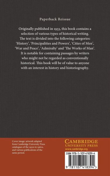 Originally published in 1933, this book contains a selection of various types of historical writing. The text is divided into the following categories: 'History', 'Principalities and Powers', 'Cities of Men', 'War and Peace', 'Admiralty' and 'The Works of Man'. It is notable for containing passages by writers who might not be regarded as conventionally historical. This book will be of value to anyone with an interest in history and historiography.