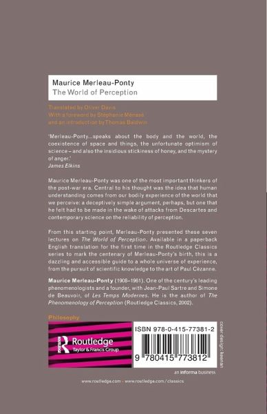 Central to Maurice Merleau-Ponty's thought was the idea that human understanding comes from our bodily experience of the world that we perceive. This title provides a guide to a whole universe of experience, from the pursuit of scientific knowledge, through the psychic life of animals to the glories of the art of Paul Cezanne.