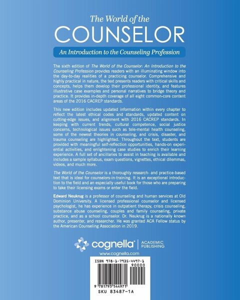 The sixth edition of The World of the Counselor: An Introduction to the Counseling Profession provides readers with an illuminating window into the day-to-day realities of a practicing counselor. Comprehensive and highly practical in nature, the text presents readers with critical skills and concepts, helps them develop their professional identity, and features illustrative case examples and personal narratives to bridge theory and practice. This new edition includes updated information within every chapter to reflect the latest ethical codes and standards, updated content on cutting-edge issues, and alignment with 2016 CACREP standards. In keeping with current trends, cultural competence, social justice concerns, technological issues such as tele-mental health counseling, some of the newest theories in counseling, and crisis, disaster, and trauma counseling are highlighted. Throughout the text, students are provided with meaningful self-reflection opportunities, hands-on experiential activities, and enlightening case studies to enrich their learning experience. A full set of ancillaries to assist in teaching is available and includes a sample syllabus, exam questions, vignettes, ethical dilemmas, videos, and much more. Each of the eight common-core content areas of CACREP are covered through chapters on professional issues (e.g., history, professional organizations, characteristics of the professional counselor), standards in the professional (e.g., CACREP, credentialing, ethics, cross-cultural and social justice competence), counseling skills, counseling theories, normal and atypical human development, group counseling, couples and family counseling, testing and assessment, research, and consultation and supervision. Two dedicated chapters cover cultural competence and social justice issues. The last three chapters highlight school counseling; mental health, rehabilitation, and addiction counseling; and college counseling. New vignettes from counselors in the field are peppered throughout these chapters. An afterword offers sage advice for applying to graduate school and finding a job. The World of the Counselor is a thoroughly research- and practice-based text that is ideal for counselors-in-training. It is an exceptional introduction to the field and an especially useful book for those who are preparing to take their licensing exams or enter the field.