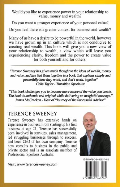 Would you like to experience freedom in your relationship to money, value and wealth? Do you want a stronger experience of your own value? Do you think there could be a greater context for wealth or a greater context for business? Many of us have a desire to be powerful with money however we have grown up in a world which is not conducive to creating real wealth. This book will give you a new view of your relationship to wealth, a view which will leave you experiencing clarity, freedom and the power to create value for both yourself and for others.