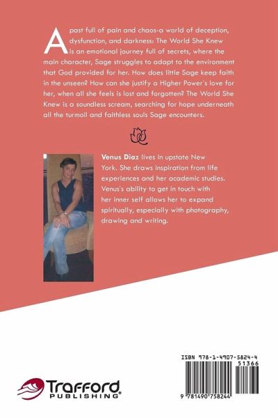 A past full of pain and chaos-a world of deception, dysfunction, and darkness: The World She Knew is an emotional journey full of secrets, where the main character, Sage struggles to adapt to the environment that God provided for her. How does little Sage keep faith in the unseen? How can she justify a Higher Power's love for her, when all she feels is lost and forgotten? The World She Knew is a soundless scream, searching for hope underneath all the turmoil and faithless souls Sage encounters.