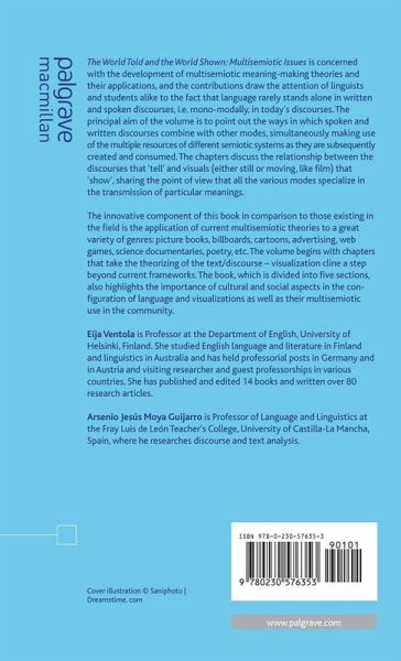 List of Illustrations List of Figures List of Tables List of Appendices Notes on Contributors Acknowledgements Introduction; The World Told and The World Shown. Multisemiosis Issues; E.Ventola & A.J.M.Guijarro PART I: MULTIMODAL THEORIES: CODING THE VISUAL Multisemiosis and Context-Based Register Typology: Registerial Variation in The Complementarity of Semiotic Systems; C.M.I.M.Matthiessen Developing Multimodal Texture; M.Thomas Metonymy in Visual and Audiovisual Discourse; C.Forceville What Makes us Laugh? Verbo-Visual Humour in Newspaper Cartoons; E.El Refaie Citizenship and Semiotics: Towards A Multimodal Analysis of Representations of The Relationship between The State and The Citizen; G.Pagani PART II: CHILDREN'S NARRATIVES AND MULTISEMIOTICS On Interaction of Image and Verbal Text in A Picture Book. A Multimodal and Systemic Functional Study; A.J.M.Guijarro & M.J.P.Sanz The Text-Iimage Matching: One Story, Two Textualizations; M.C.Astorga PART III: TEXT AND VISUAL INTERACTION IN ADVERTISING AND MARKETING Sequential Visual Discourse Frames; K.O'Halloran& V.Lim Fei A Systemic Functional Framework for The Analysis of Corporate Television Advertisements; S.Tan Multisemiotic Marketing and Advertising: Globalization versus Localization and the Media; A.Hopearuoho & E.Ventola PART IV: MULTISEMIOTICS IN ENACTED ROLES AND VIRTUAL IDENTITIES Taking The Viewer intoThe Field: Interaction between Visual and Verbal Representation in A Television Earth Sciences Documentary; A.Love Developing The Metafunctional Framework for Analyzing Multimodal Hypertextual Identity Construction; A.Maiorani PART V: INTEGRATING TEXT, VISUAL AND SPACE MULTIMODALLY From Musing to A/musing: Semogenesis and Western Museums; M.Stenglin Floods and Fidget Wheels: A Comparative Systemic Functional Analysis of Slessor's 'Five Bells' and Olsen's 'Salute to Five Bells'; K.Tuckwell Index