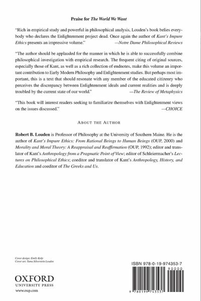 The World We Want compares the future world that Enlightenment intellectuals had hoped for with our own world at present. In what respects do the two worlds differ, and why are they so different? To what extent is and isn't our world the world they wanted, and to what extent do we today still want their world? Unlike previous philosophical critiques and defenses of the Enlightenment, the present study focuses extensively on the relevant historical and empirical record first, by examining carefully what kind of future Enlightenment intellectuals actually hoped for; second, by tracking the different legacies of their central ideals over the past two centuries. But in addition to documenting the significant gap that still exists between Enlightenment ideals and current realities, the author also attempts to show why the ideals of the Enlightenment still elude us. What does our own experience tell us about the appropriateness of these ideals? Which Enlightenment ideals do not fit with human nature? Why is meaningful support for these ideals, particularly within the US, so weak at present? Which of the means that Enlightenment intellectuals advocated for realizing their ideals are inefficacious? Which of their ideals have devolved into distorted versions of themselves when attempts have been made to realize them? How and why, after more than two centuries, have we still failed to realize the most significant Enlightenment ideals? In short, what is dead and what is living in these ideals? "The author should be applauded for the manner in which he is able to successfully combine philosophical investigation with empirical research. The frequent citing of original sources, especially those of Kant, as well as a rich collection of endnotes, make this volume an important contribution to Early Modern Philosophy and Enlightenment studies. But perhaps most important, this is a text that should resonate with any member of the educated citizenry who perceives the discrepancy between Enlightenment ideals and current realities and is deeply troubled by the current state of our world."-- The Review of Metaphysics "This book will interest readers seeking to familiarize themselves with Enlightenment views on the issues discussed."-- CHOICE "Rich in empirical study and powerful in philosophical analysis, Louden's book belies everybody who declares the Enlightenment project dead. Once again the author of Kant's Impure Ethics presents an impressive volume."--Notre Dame Philosophical Reviews