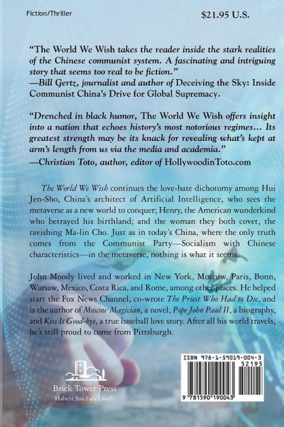"The World We Wish takes the reader inside the stark realities of the Chinese communist system. A fascinating and intriguing story that seems too real to be fiction." -Bill Gertz, journalist and author of Deceiving the Sky: Inside Communist China's Drive for Global Supremacy. "Drenched in black humor, The World We Wish offers insight into a nation that echoes history's most notorious regimes... Its greatest strength may be its knack for revealing what's kept at arm's length from us via the media and academia." -Christian Toto, author, editor of HollywoodinToto.com The World We Wish continues the love-hate dichotomy among Hui Jen-Sho, China's architect of Artificial Intelligence, who sees the metaverse as a new world to conquer; Henry, the American wunderkind who betrayed his birthland; and the woman they both covet, the ravishing Ma-lin Cho. Just as in today's China, where the only truth comes from the Communist Party - Socialism with Chinese characteristics -- in the metaverse, nothing is what it seems. The World We Wish, the gripping, passion-filled and danger-laden sequel to Of Course They Knew, Of Course They.., will make readers think twice about what they wish for, lest it come true.